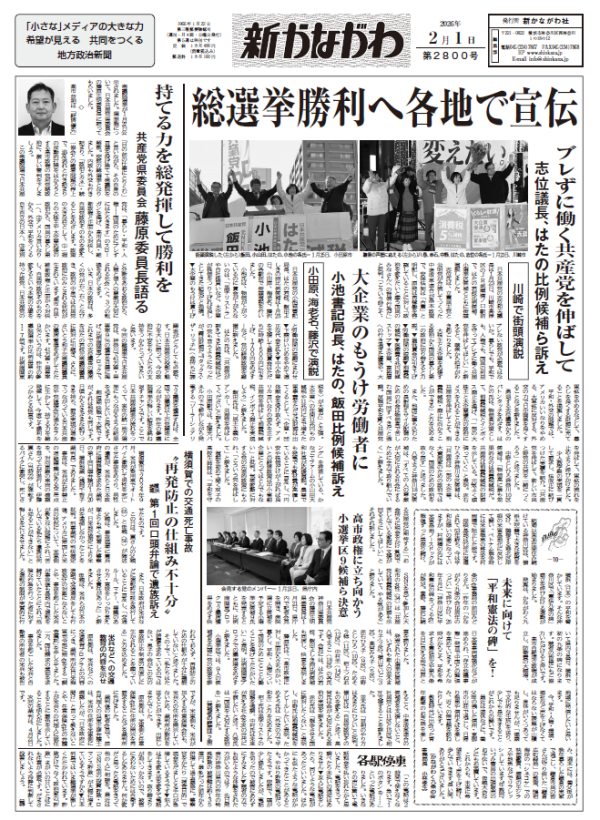 日本共産党神奈川県委員会の藤原正明県委員長は1月21日、県庁内で記者会見を開き、衆院選に立候補を予定する小選挙区候補9氏を発表するとともに、比例南関東ブロックで2議席獲得をめざす決意を語りました。